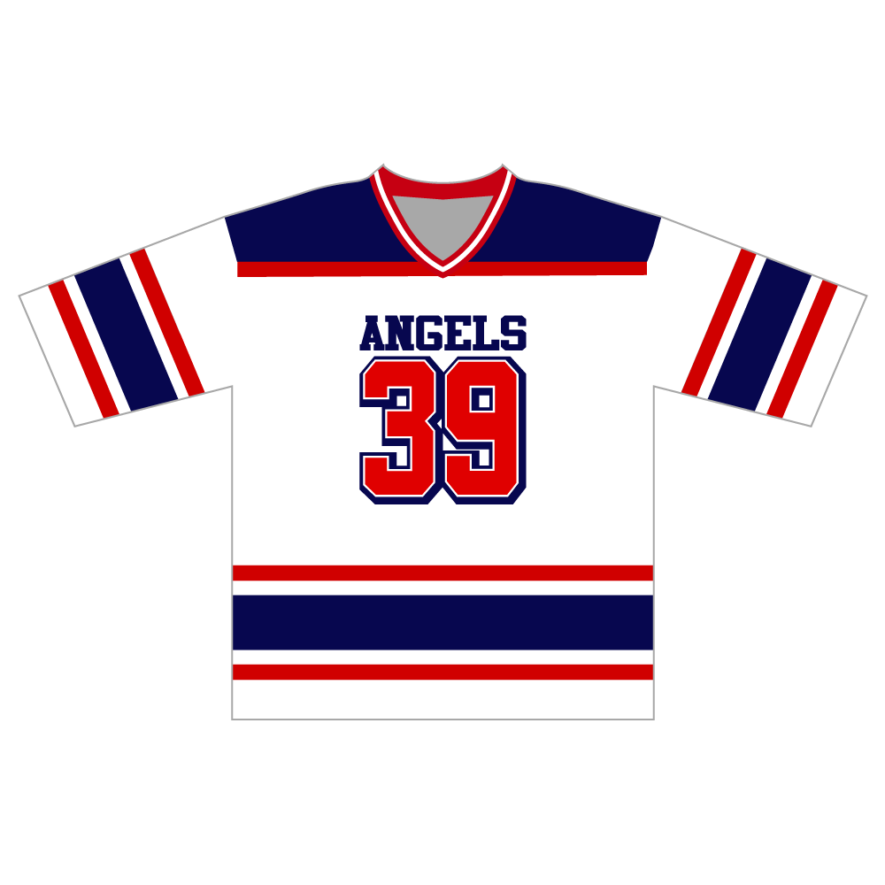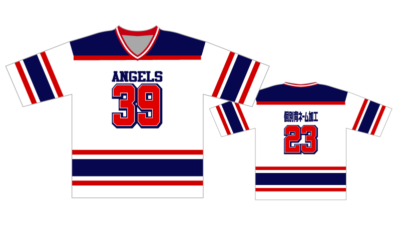 ホッケーシャツ(6分袖ルーズフィットクラスTシャツ)ホワイトネイビーレッド