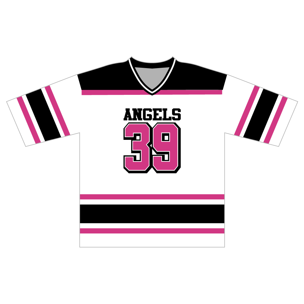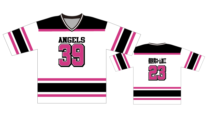ホッケーシャツ(6分袖ルーズフィットクラスTシャツ)ホワイトブラックピンク