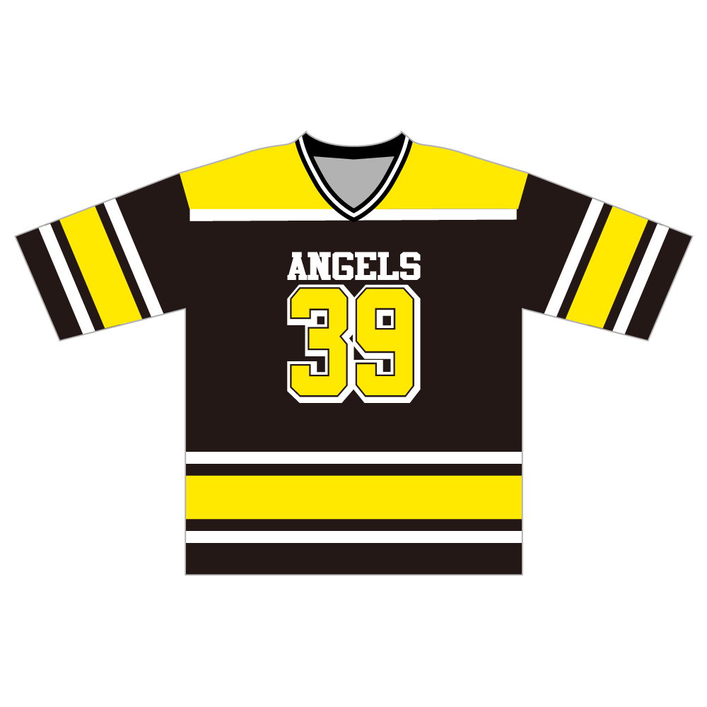 ブラック本体にイエローが映えるホッケーシャツ。