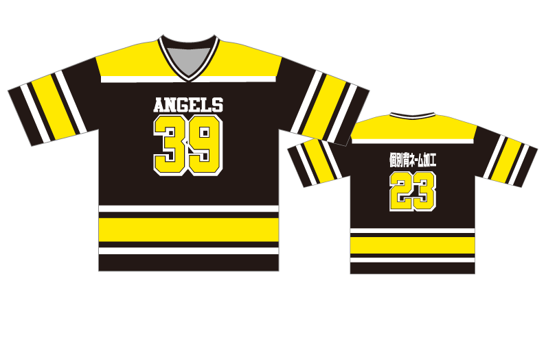 ホッケーシャツ(6分袖ルーズフィットクラスTシャツ)ブラックイエローホワイト