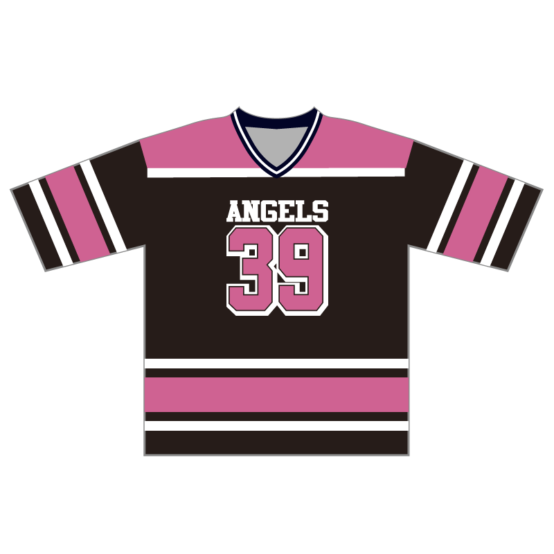 ホッケーシャツ(6分袖ルーズフィットクラスTシャツ)ピンクホワイトブラック